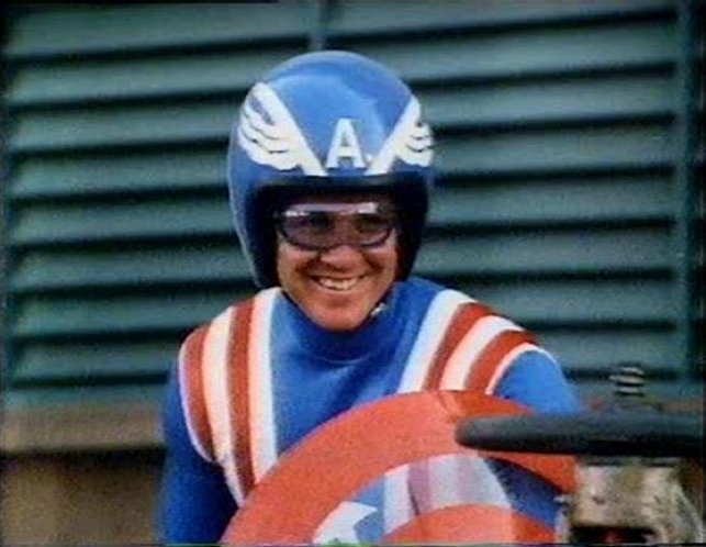The Plot: When commercial artist Steve Rogers is nearly killed by spies seeking his late father’s formula for a super-steroid, he’s saved by surgery and a dose of said formula, granting him super abilities. A government agency equips him with a high-tech motorcycle, bulletproof shield, and flashy Evel Knievel-esque costume.