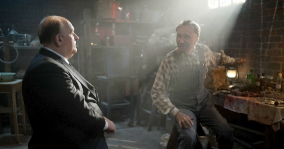 Hopkins-as-Hitchcock is introduced to us much in the same way as he introduced his classic TV series of the 1950s and ’60s, bidding us “Good eeevening” after we witness Wyoming farmer Ed Gein (Michael Wincott) murder his own brother. In real life, Gein’s crimes served as inspiration for Robert Bloch’s novel Psycho, as well as the 1973 cult classic Texas Chain Saw Massacre; the movie concerns itself with the former, specifically Hitch’s decision to film it as his next project.