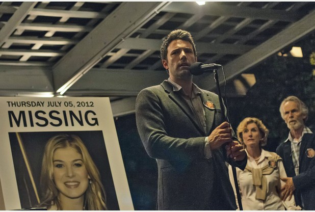 The first half of the movie centers on Nick Dunne (Ben Affleck), a boorish husband whose adorable wife Amy (Rosamund Pike) disappears under mysterious circumstances. As the police investigation gains momentum, cracks begin to appear in the Dunne’s fairy tale marriage, the early days of which are fleshed out via flashbacks narrated by Amy in the form of diary entries, and evidence points to Nick having disposed of his wife. Cue the inevitable media circus that puts Nick in a grungy fishbowl and cranks the nightmare up to 11.